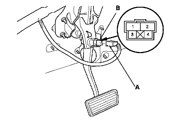 1. Disconnect the 4P connector (A) from the brake pedal position switch (B).
