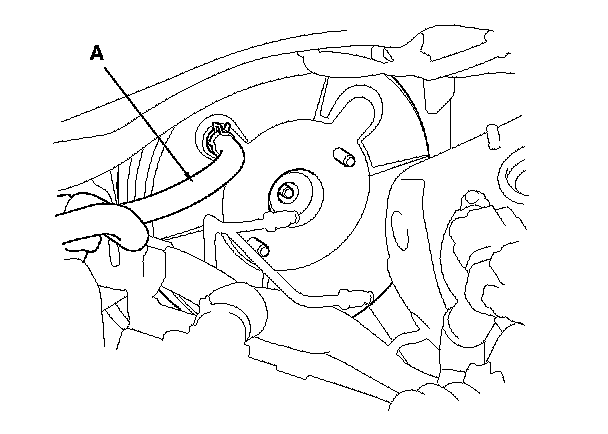 4. Disconnect the brake booster vacuum hose (A) from the brake booster.