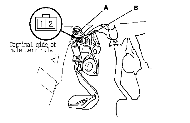 1. Disconnect the clutch interlock switch 2P connector (A).