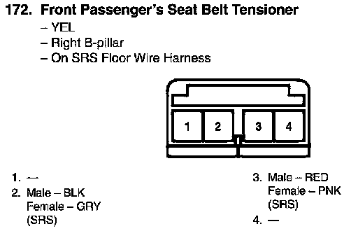 View 172 Front Passenger's Seat Belt Tensioner Connector View