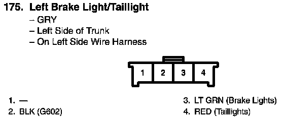 View 175 Left Brake Light/Taillight Connector View