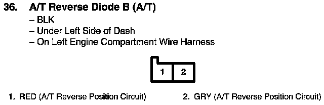 View 36 A/T Reverse Diode B Connector View (A/T)