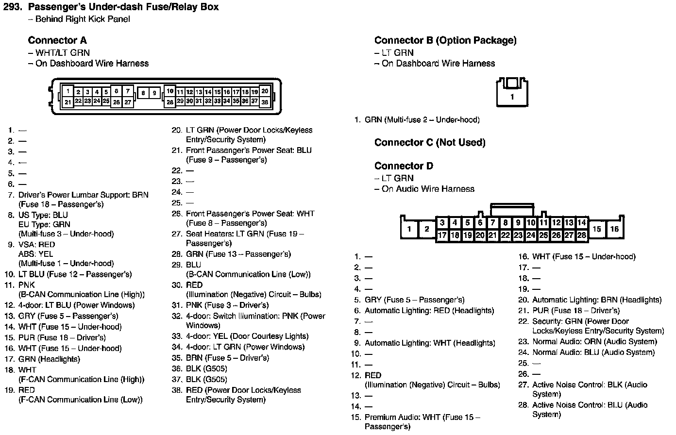 Passenger's Under-dash Fuse/Relay Box Connector View