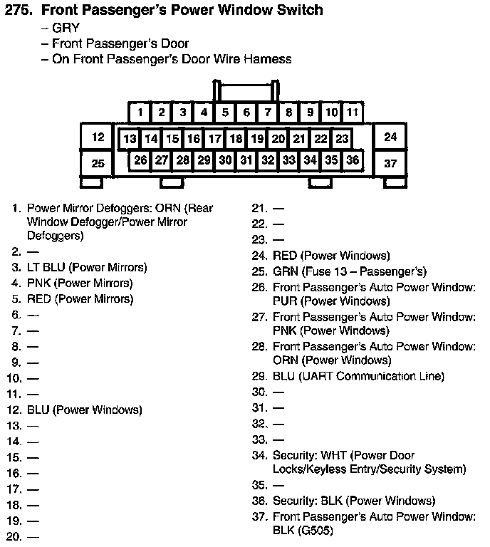 Front Passenger's Power Window Switch Connector View