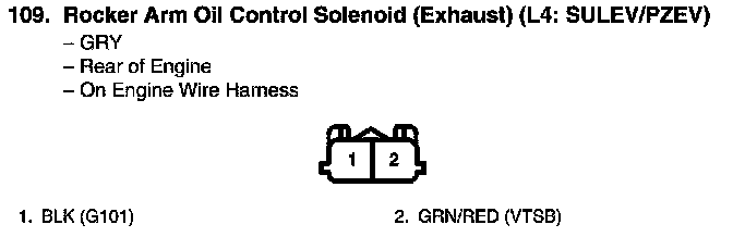 Rocker Arm Oil Control Solenoid (Exhaust) Connector View (Without SULEV/PZEV)