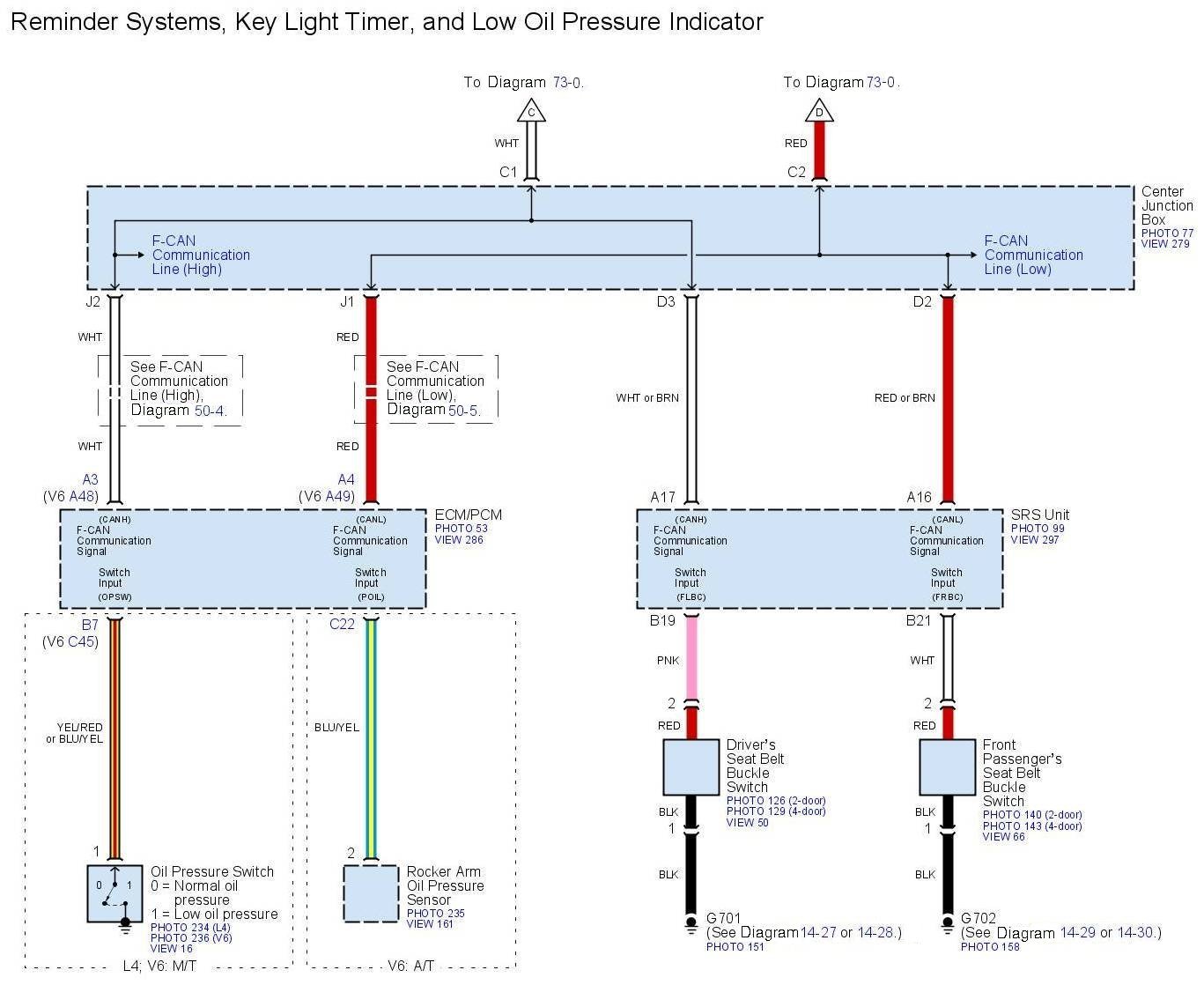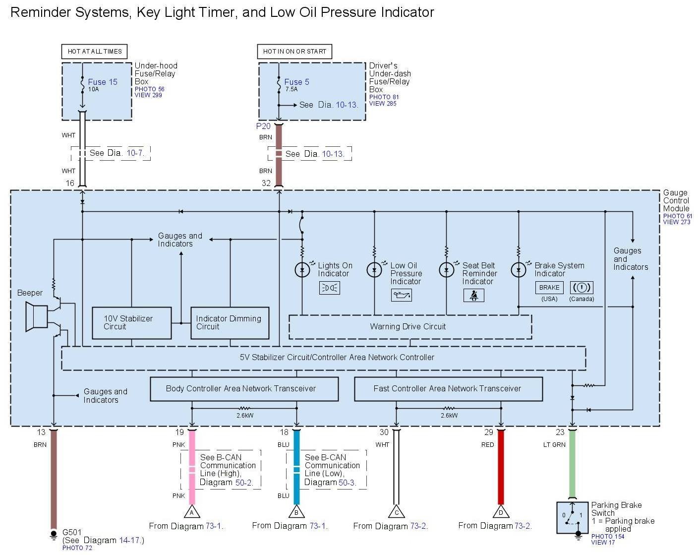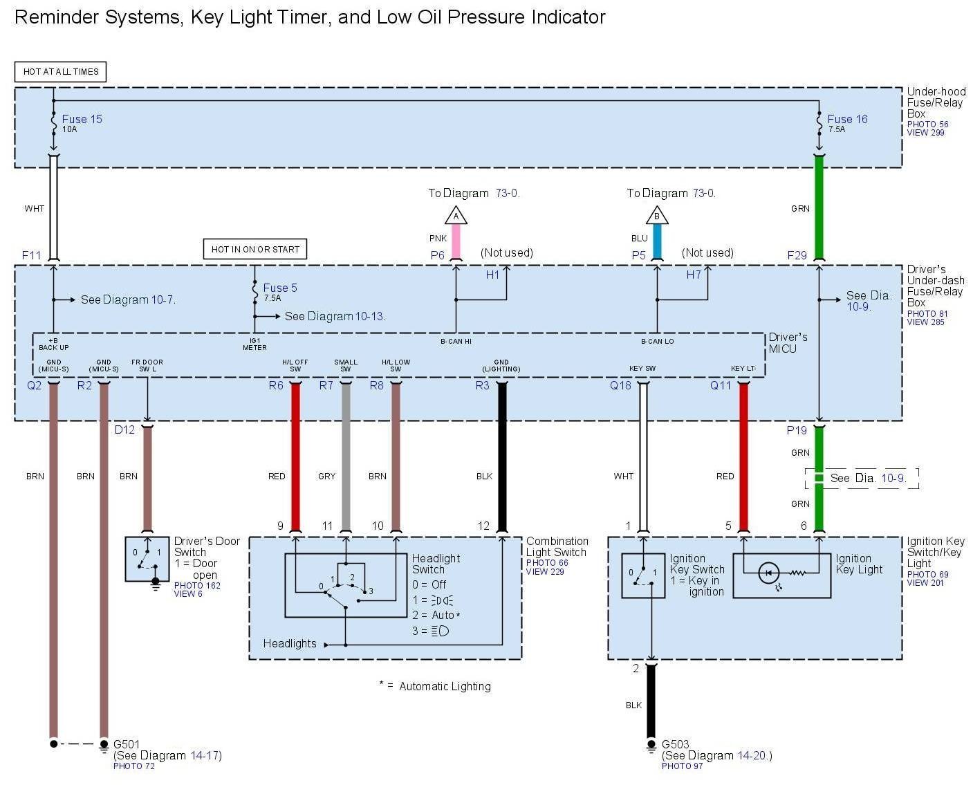 Diagram Set 73 (Reminder Systems, Key Light Timer and Low Oil Pressure Indicator)