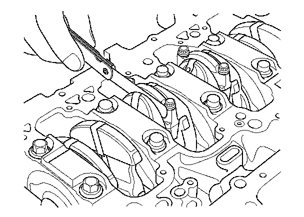 3. Measure the connecting rod end play with a feeler gauge between the connecting rod and the crankshaft.
