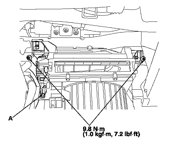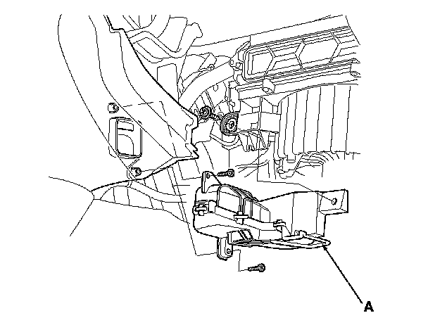 9. Remove the self-tapping screws, and the passenger's heater duct (A).