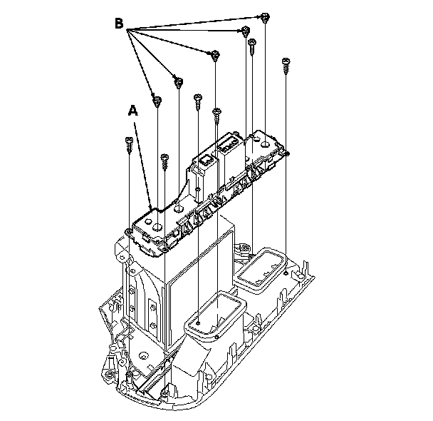 2. Remove the self-tapping screws and the climate control unit (A). If necessary, replace the bulbs (B).