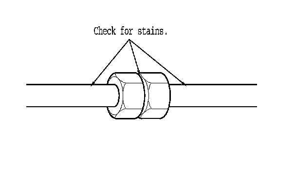 1. With the ignition switch in LOCK (0), inspect the A/C components, the pressure lines and the hoses for stains that may indicate a refrigerant or a compressor oil leak.