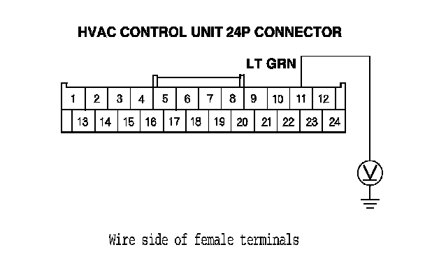 4. Measure the voltage between the HVAC control unit 24P connector No. 11 terminal and body ground.