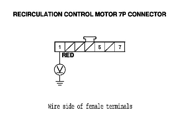 4. Measure the voltage between the recirculation control motor 7P connector No. 1 terminal and body ground.