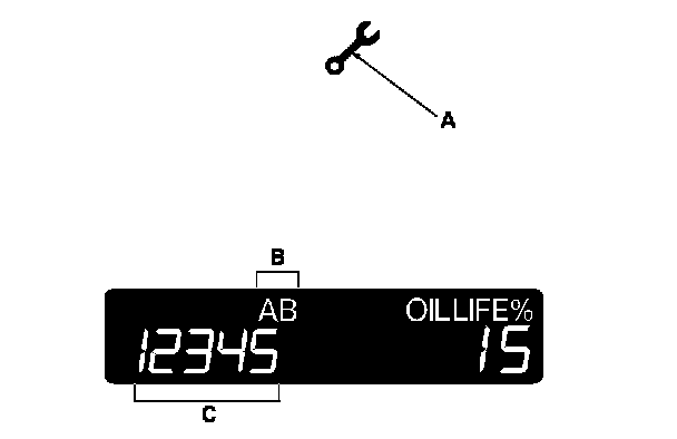 The maintenance minder indicator (A) will also come on, and the maintenance item code(s) for other scheduled maintenance items needing service will appear in the information display.