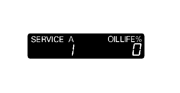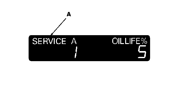 3. When the remaining engine oil life is 1 % to 5 %, the maintenance message "SERVICE" (A) appears along with the same maintenance item code(s), when the ignition switch is ON (II).