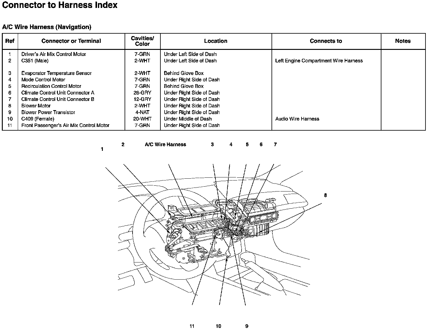 A/C Wire Harness Connector and Harness Locations (Navigation)