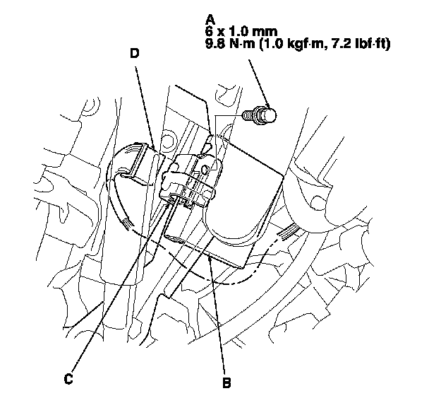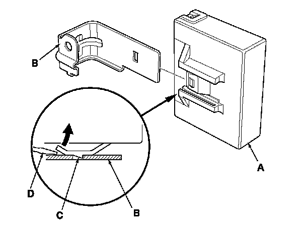 NOTE: While separating the TPMS control unit from the bracket, release the hook (C) on the TPMS control unit using a flat-tipped screwdriver (D), and push it up to remove the bracket.