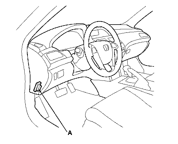 2. If the MIL stays on, connect the HDS to the data link connector (DLC) (A) located under the driver's side of the dashboard.
