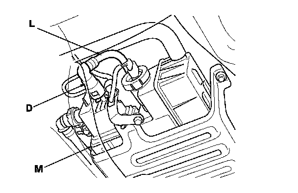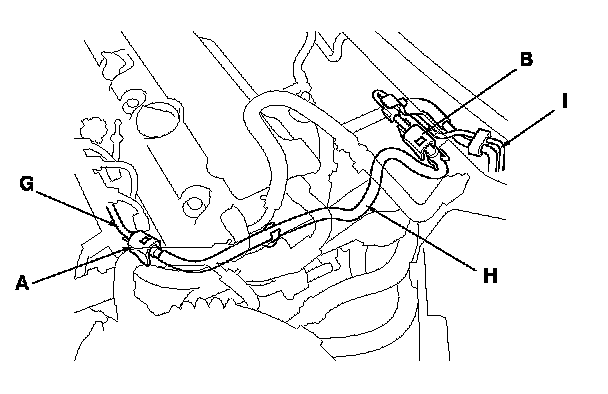 The fuel line/quick-connect fittings (A), (B), (C), (D), (E), and (F) connect the fuel rail (G) to the fuel feed hose (H), the fuel feed hose to the fuel line (I), the fuel line (J) to the fuel tank unit (K), the fuel vapor line (L) to the EVAP canister (M), and the fuel tank vapor recirculation tube (N) (PZEV model, and fuel fill neck tube (O) to the fuel fill pipe (P)). When removing or installing the fuel feed hose, the fuel tank unit, or the fuel tank, it is necessary to disconnect or connect the quick-connect fittings.