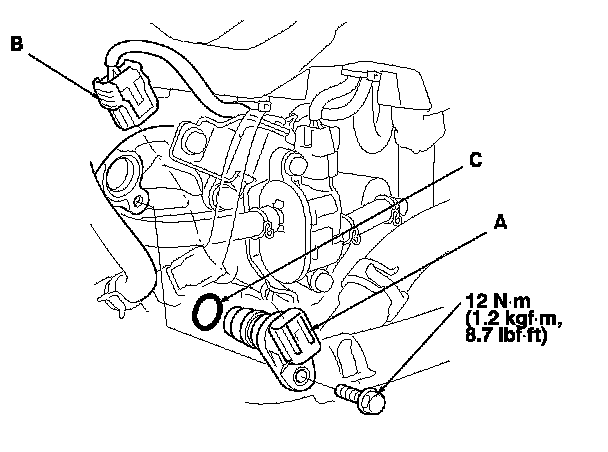 Install the parts in the reverse order of removal with a new O-ring (C).