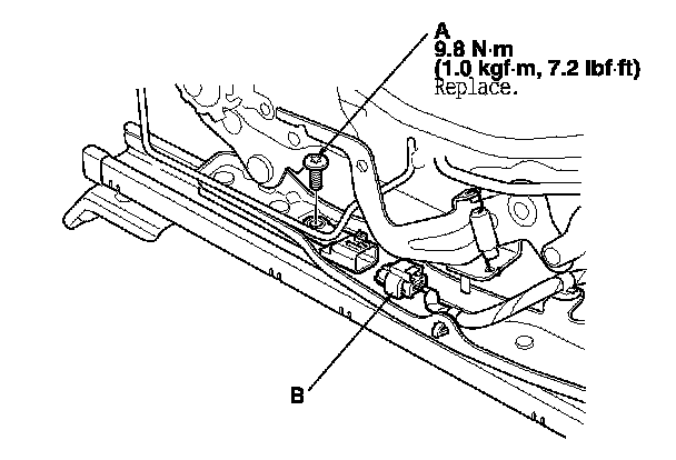 5. Remove the nut (B), then remove the driver's seat position sensor.