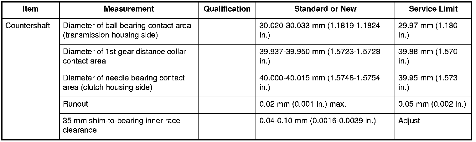Countershaft Specifications (M/T)