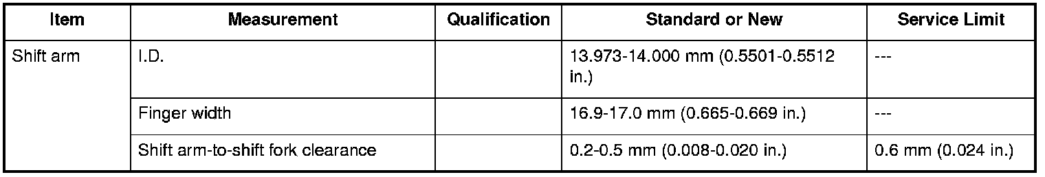 Shift Arm Specifications (M/T)