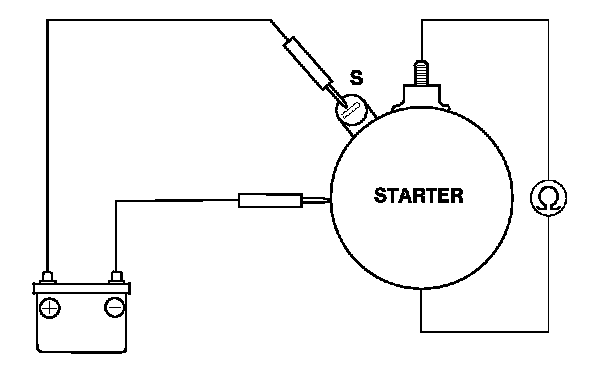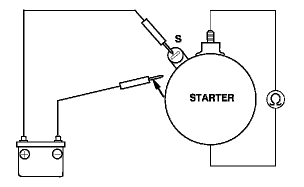 NOTE: To avoid damaging the starter, never leave the battery connected for more than 10 seconds.
