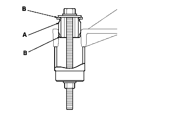 6. Install the gearbox mount cushion by tightening the nut until the mount cushion edges (B) contact the gearbox flange surface.