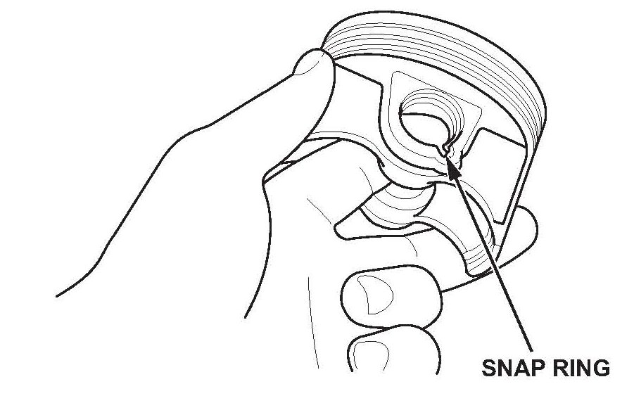 41. Install a new piston pin snap ring on one side of a new piston.