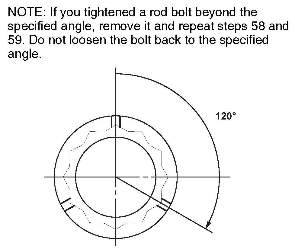 59. Tighten the connecting rod bolts an additional 120°.