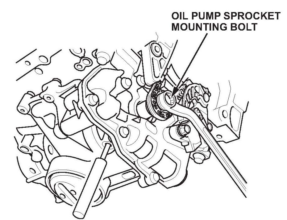 9. Loosen the oil pump sprocket mounting bolt.