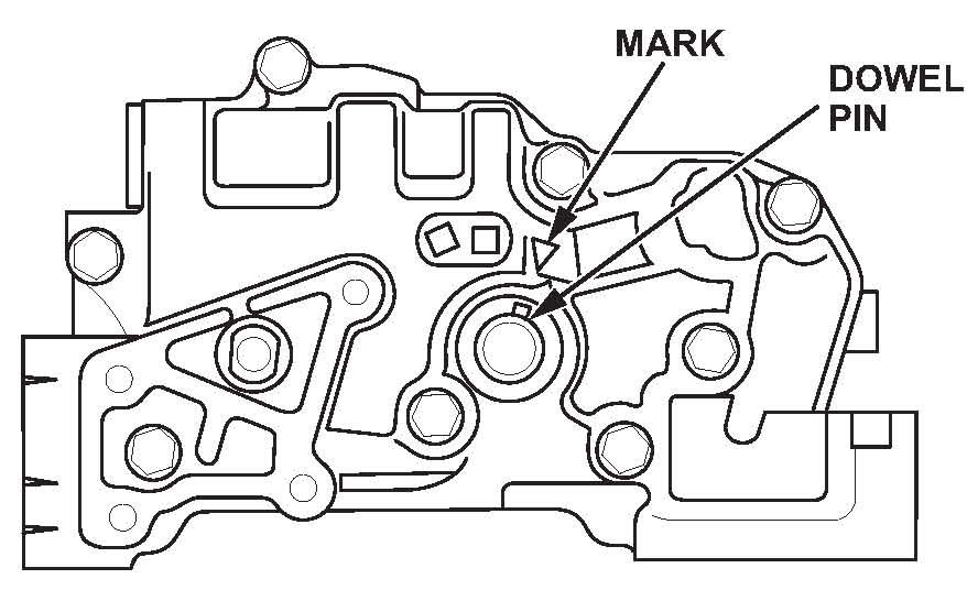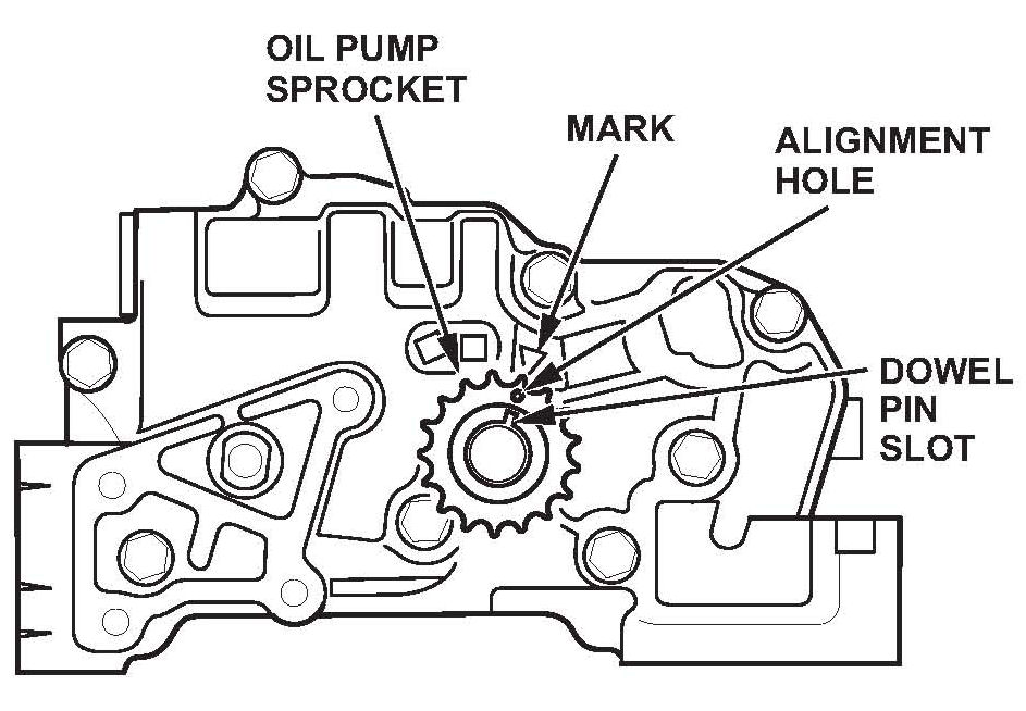 12. Align the dowel pin on the rear balancer shaft with the mark on new the oil pump.