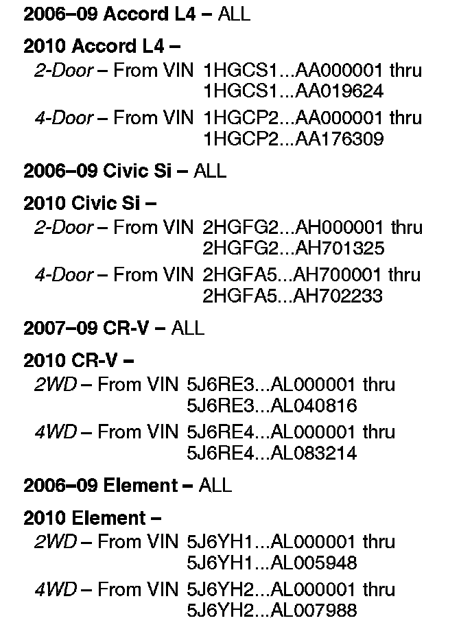 See VEHICLES AFFECTED