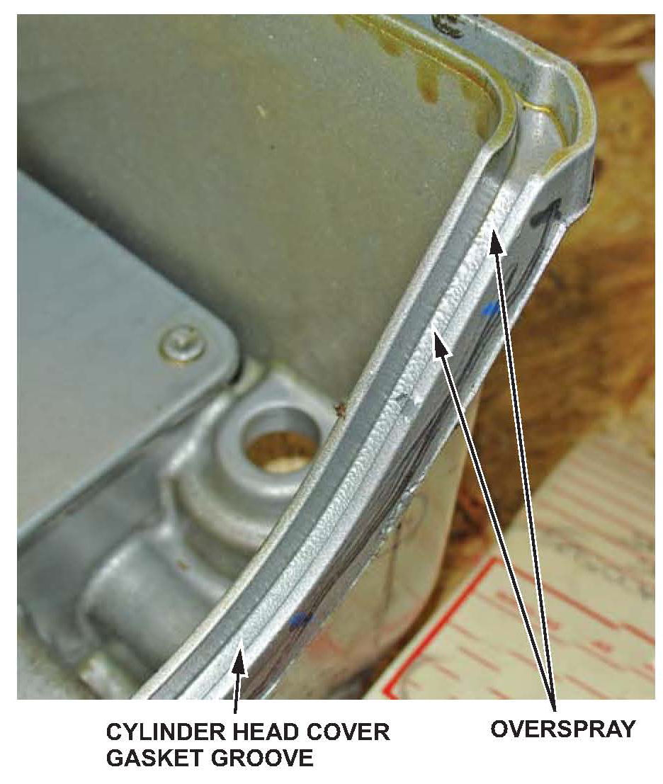 Is there paint overspray in the cylinder head cover gasket groove?