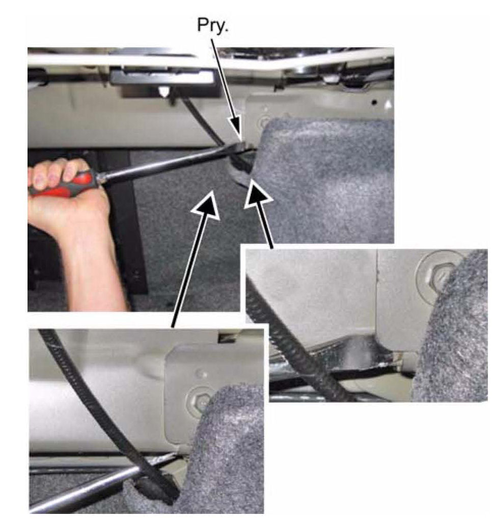 8. With the rear bulkhead bolts installed, place a screwdriver between the metal panels as shown, and separate them, making sure a gap is created.