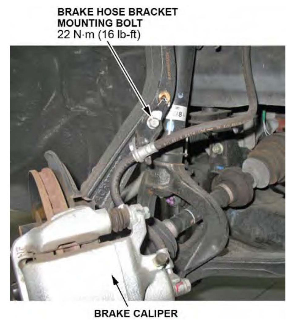 5. Remove the brake hose bracket mounting bolt from the knuckle.