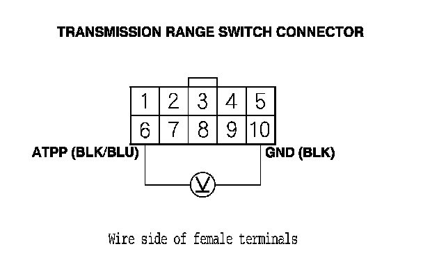 26. Measure the voltage between transmission range switch connector terminals No. 6 and No. 10.
