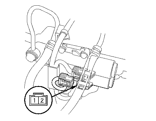 13. Connect a jumper wire from the negative battery terminal to A/T clutch pressure control solenoid valve B connector terminal No. 2, and connect another jumper wire from the positive battery terminal to connector terminal No. 1. Make sure A/T clutch pressure control solenoid valve B moves.