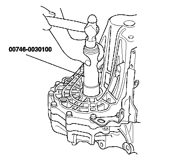 1. Remove the left driveshaft side oil seal from the transmission housing. M/T Differential Oil Seal Replacement