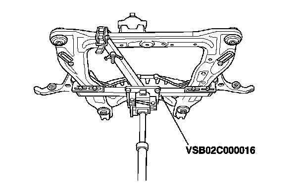 16. Tighten the right rear mounting bolt to the specified torque with the subframe alignment pin in the positioning hole.