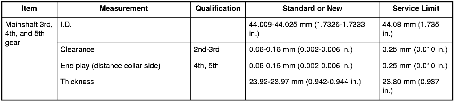 Mainshaft 3rd, 4th, and 5th Gear Specifications (M/T)