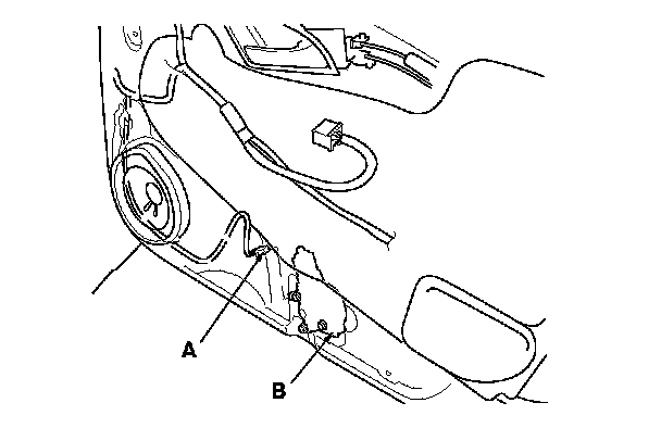 5. Disconnect the 2P connector (A) from the front passenger's power window motor (B).