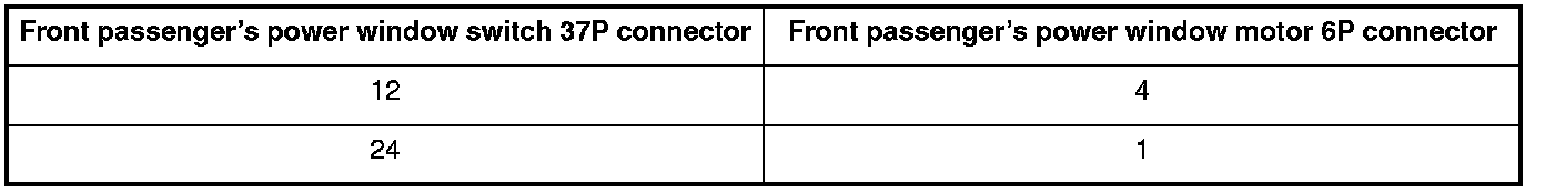 6. Check for continuity between the front passenger's power window switch 37P connector terminals and front passenger's power window motor 2P connector terminals as shown: