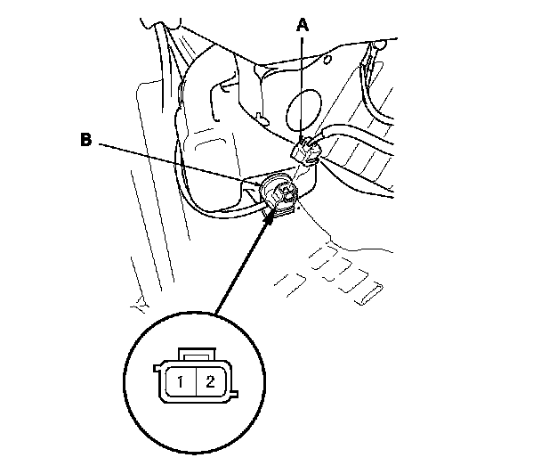 2. Disconnect the 2P connector (A) from the washer motor (B).