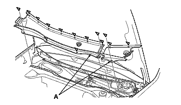 4. Remove the hood seal and cowl covers (A).