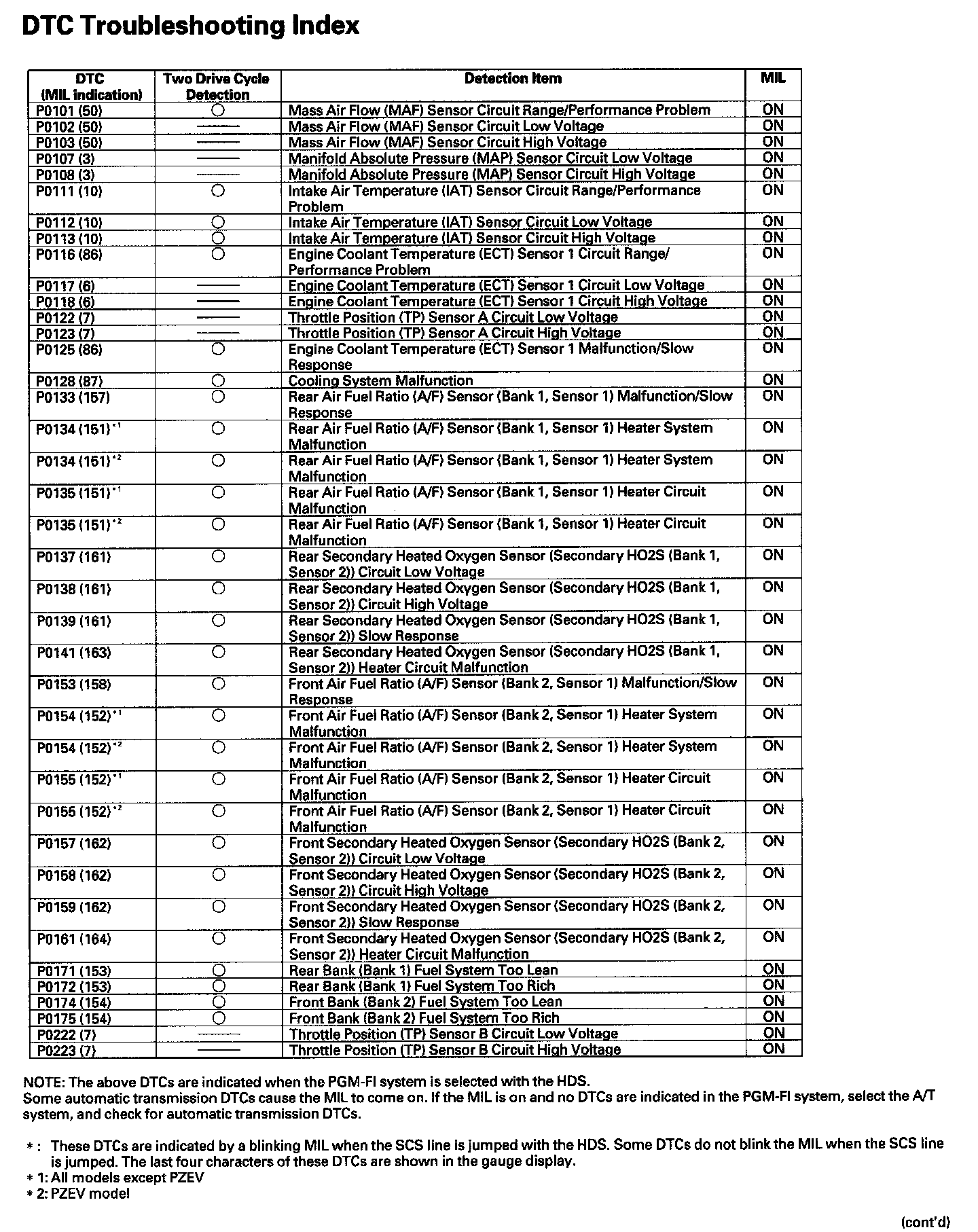 DTC Troubleshooting Index