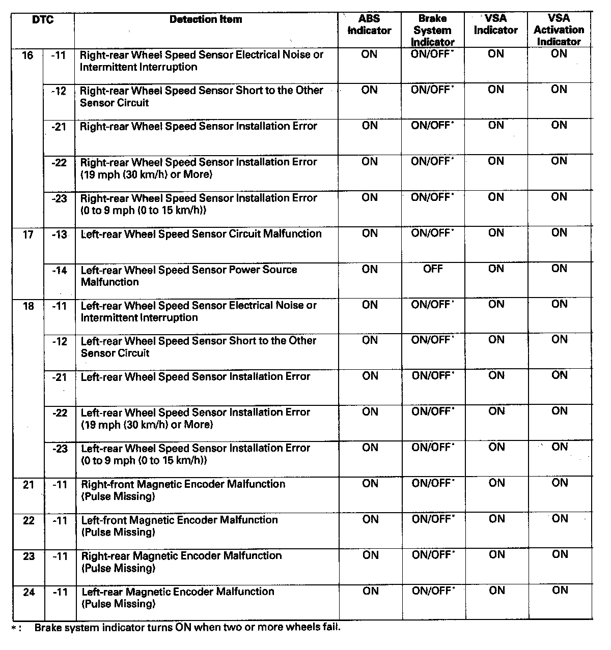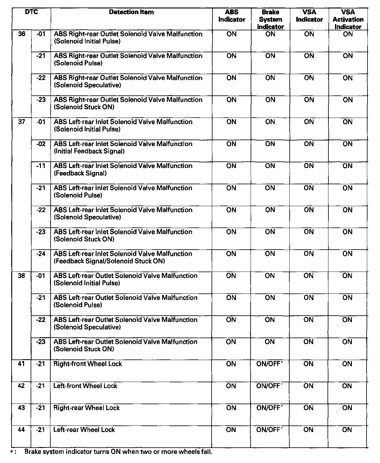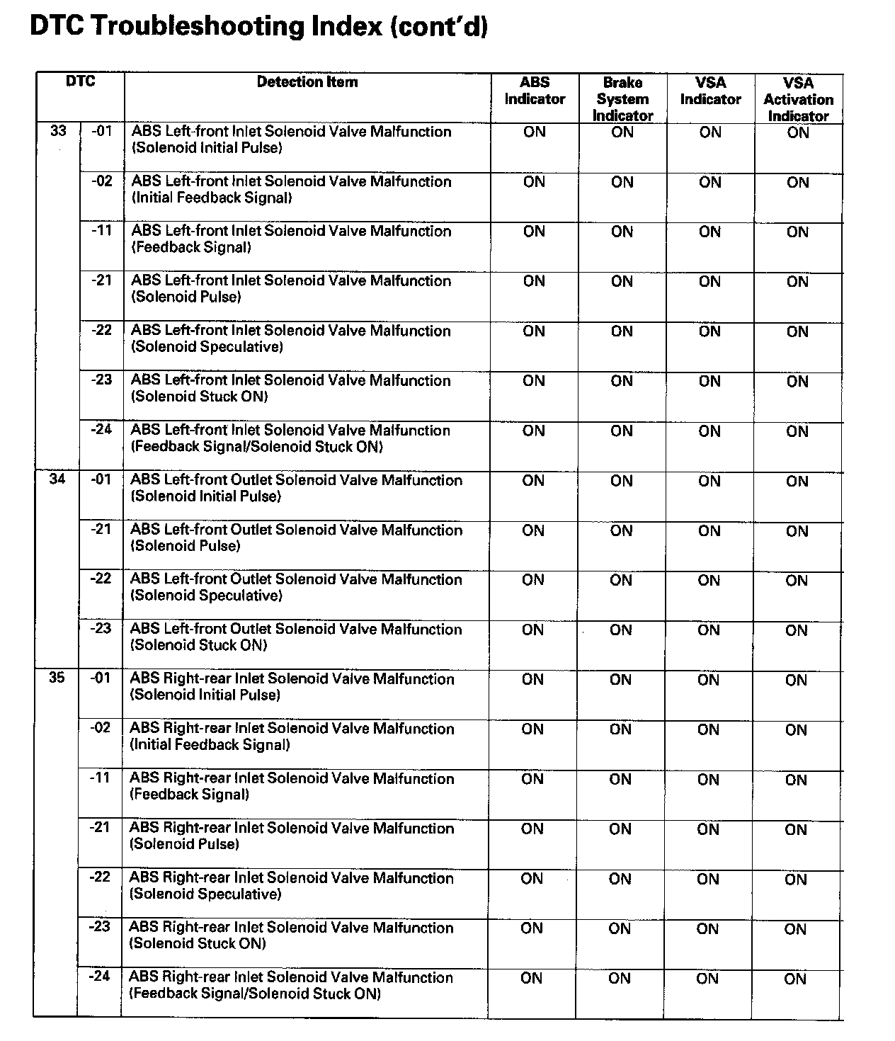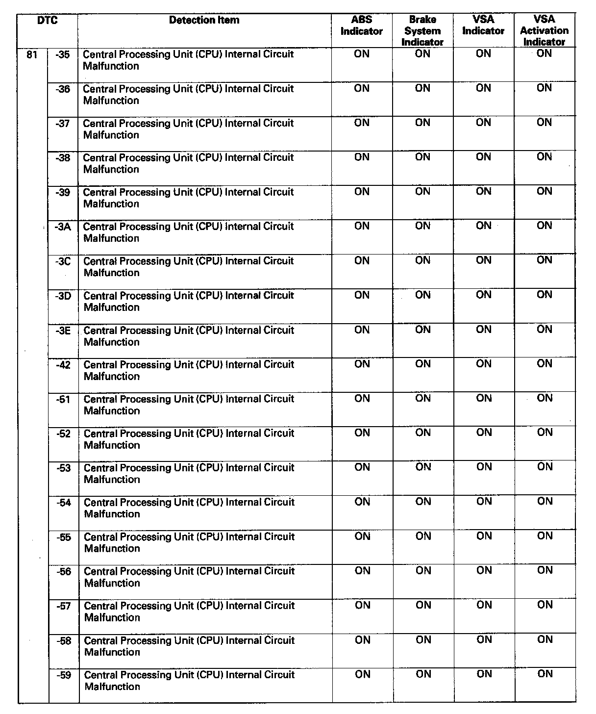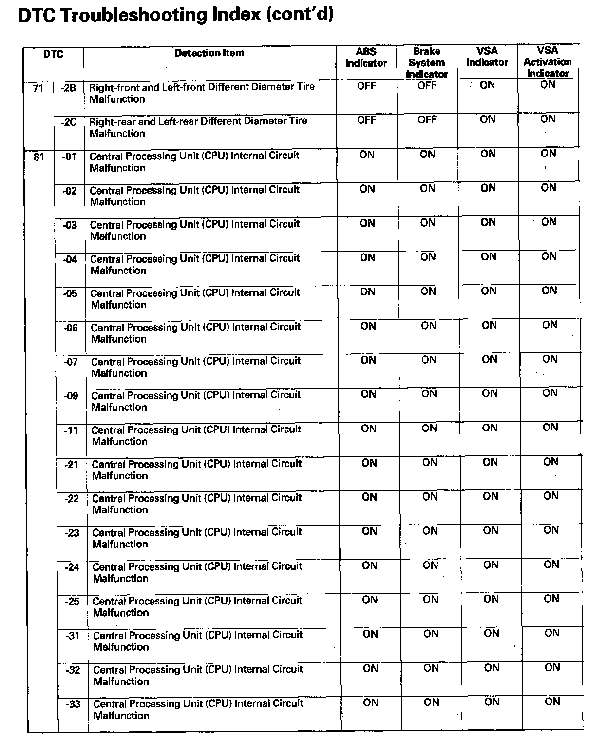DTC List - Vehicle Stability Assist