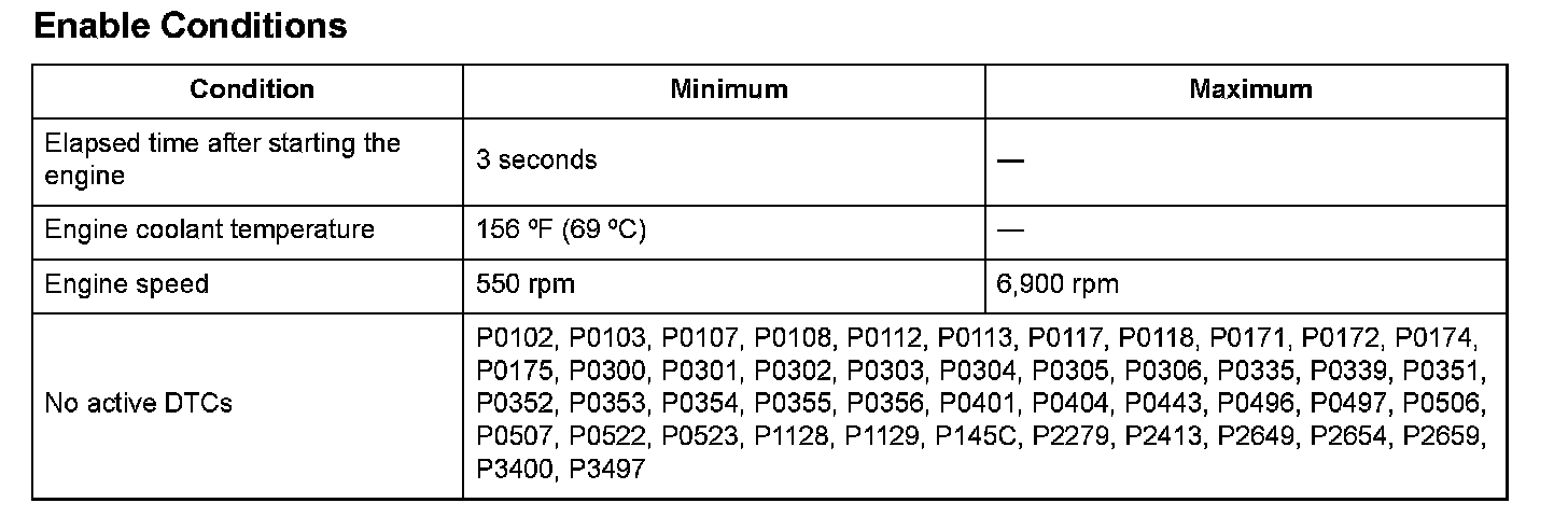 Monitor Execution, Sequence, Duration, DTC Type, OBD Status