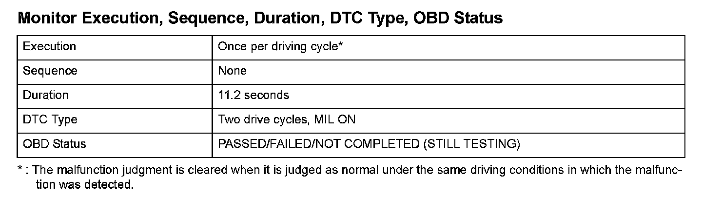 Monitor Execution, Sequence, Duration, DTC Type, OBD Status