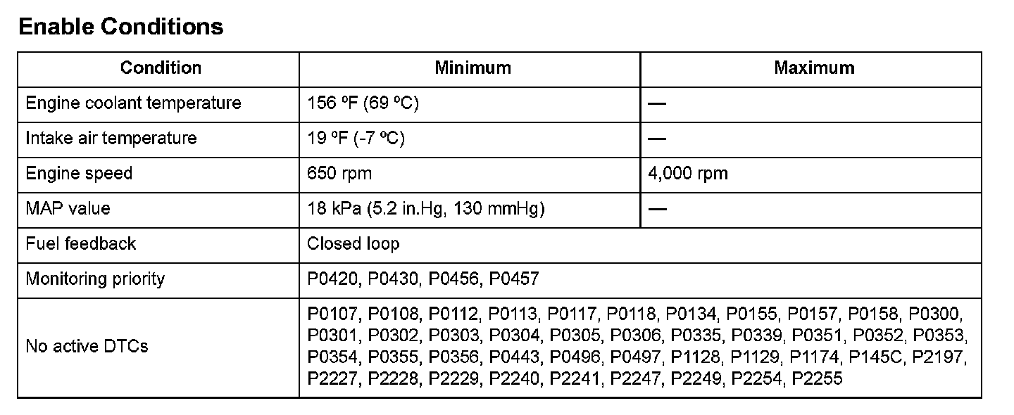 Monitor Execution, Sequence, Duration, DTC Type, OBD Status